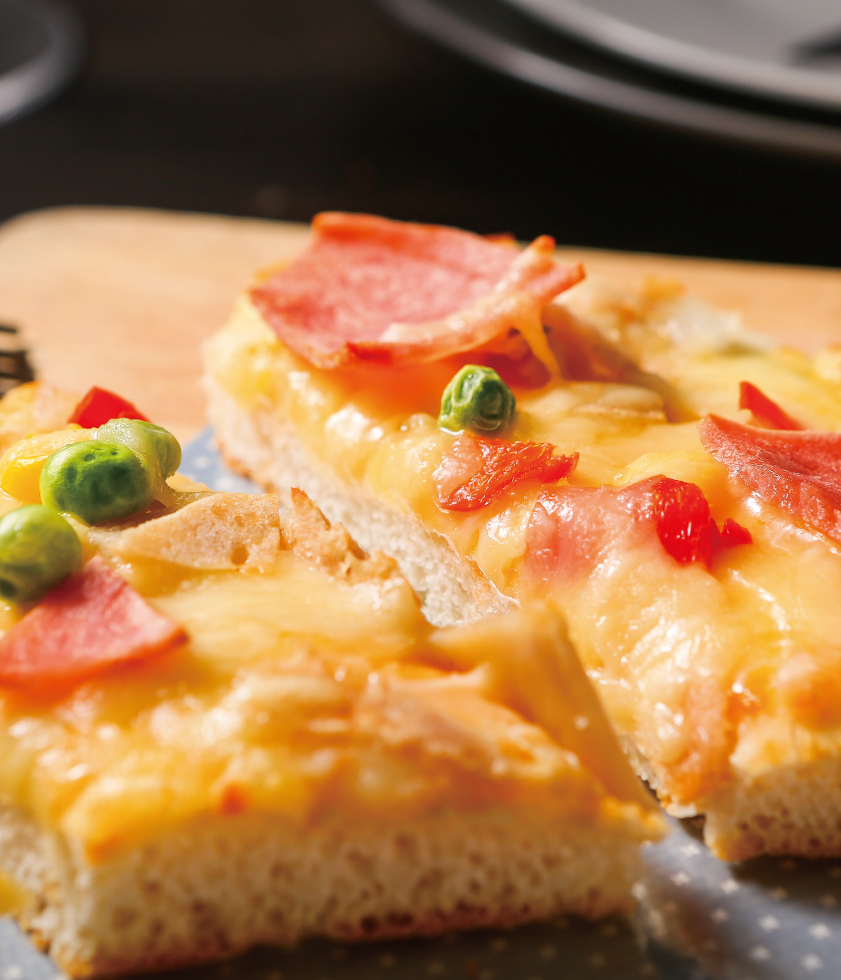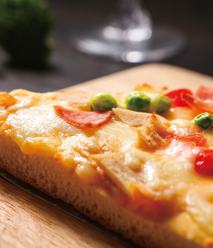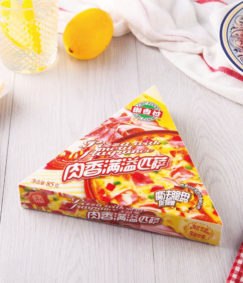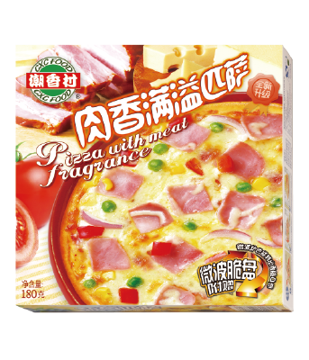 產(chǎn)品介紹:肉香滿溢匹薩——肉食主義者的心頭好!火腿、午餐肉,搭配青豆、洋蔥、紅椒、玉米,佐以酸甜可口的番茄醬,和奶香濃郁的芝士,無肉不歡,十足享受。 工藝:半制成品 規(guī)格(g):85g/180g 包裝規(guī)格:1片/盒 箱規(guī):40盒/30盒/箱