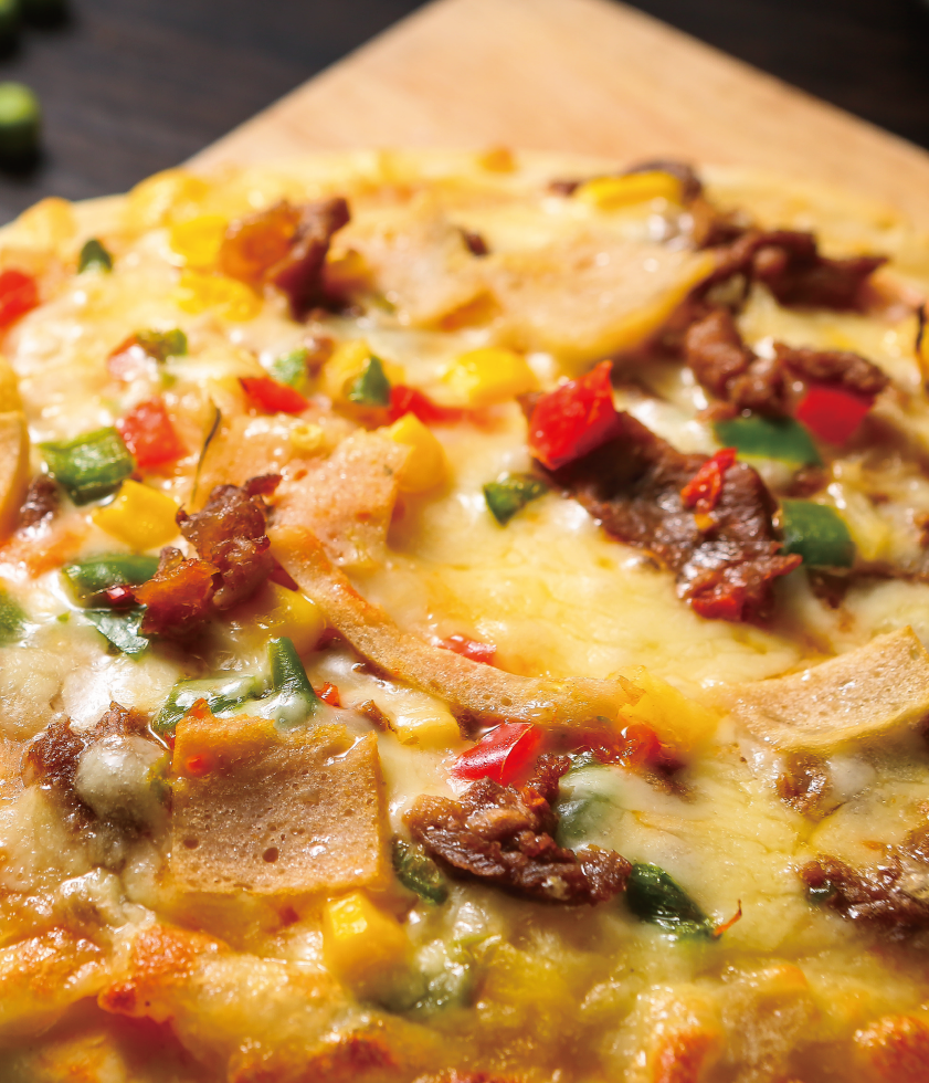 產(chǎn)品介紹:加勒比海盜匹薩——獨(dú)特的加勒比風(fēng)味牛肉,經(jīng)由迷人的混合香料腌漬,是加勒比海地區(qū)最為知名的風(fēng)味美食之一,搭配色彩艷麗的午餐肉、菠蘿、玉米、青椒、紅椒,在番茄醬和芝士的混合中,透露出難以抵擋的南美風(fēng)情。