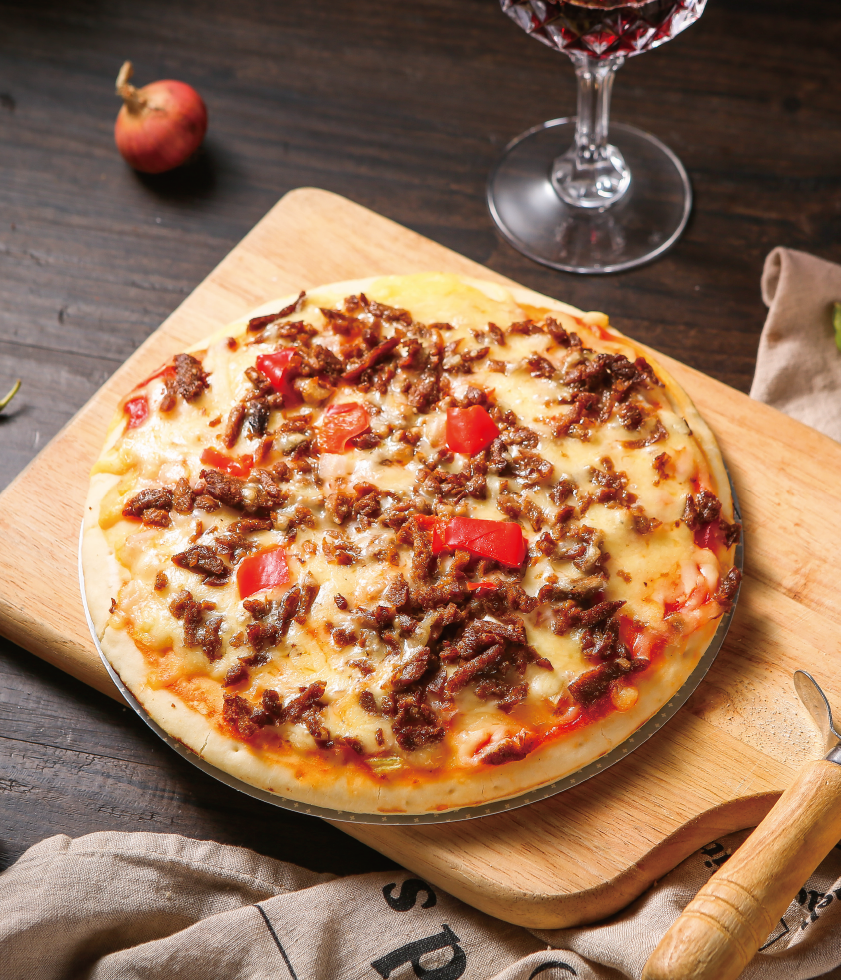 產(chǎn)品介紹:西部牛仔風(fēng)情匹薩——說到西部牛仔最愛的美味,非牛肉莫屬!這群18到19世紀(jì)在美國(guó)西部廣袤土地上的熱情無畏的開拓者,是美國(guó)歷史上開發(fā)西部的先鋒。這款以牛肉為主料,西部風(fēng)情調(diào)味的披薩,配以大杯的啤酒,也許能讓您感受到西部牛仔們的那種冒險(xiǎn)和吃苦耐勞的寶貴精神。酥松的超薄餅底是正統(tǒng)的意大利制法。