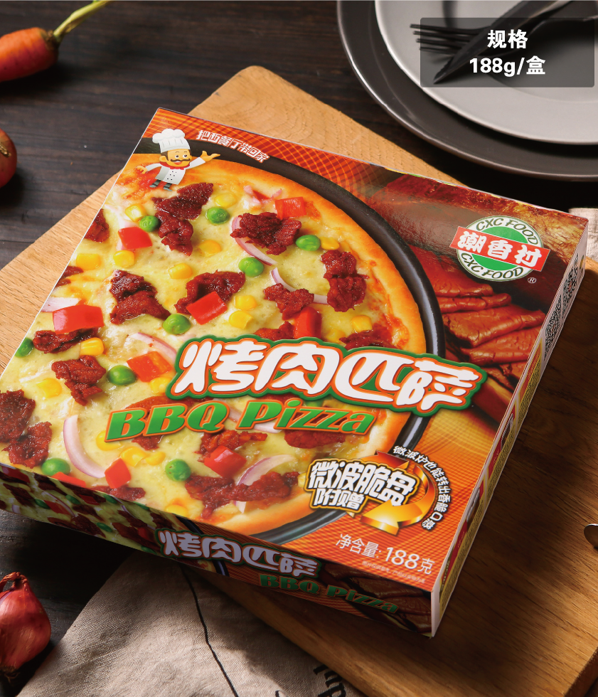 產(chǎn)品介紹:烤肉匹薩——燒烤與匹薩的完美結合,充滿美式風情的烤肉,搭配午餐肉、青豆、洋蔥、玉米、紅椒,佐以酸甜可口的番茄醬,奶香濃郁的芝士,餅底采用中種冷藏發(fā)酵技術,餅底酥脆,厚度適中,烘培后松脆彈軟。奶酪選用進口奶酪,奶香濃郁,保證家庭烘培后食材的最佳口感。
