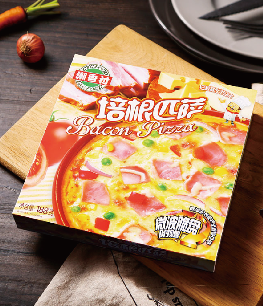 產(chǎn)品介紹:培根匹薩——選用肥瘦均衡的優(yōu)質培根肉入料,軟嫩多汁、色澤鮮明、香味四溢,佐以番茄醬和乳酪,加熱后從培根肉飄香與乳酪的奶香味混合在一起,別有一番風味。