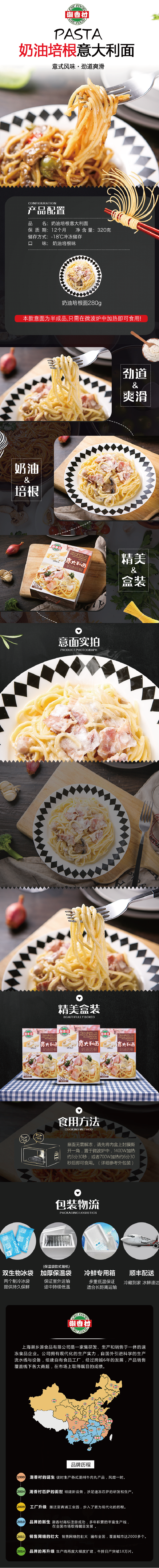 產(chǎn)品介紹:意大利奶油培根面——[嚴(yán)格選料]選用進(jìn)口優(yōu)質(zhì)杜蘭小麥制成的意面,醬料含新鮮番茄成分和其他經(jīng)過(guò)嚴(yán)選的優(yōu)質(zhì)食材,營(yíng)養(yǎng)豐富,不添加防腐劑。