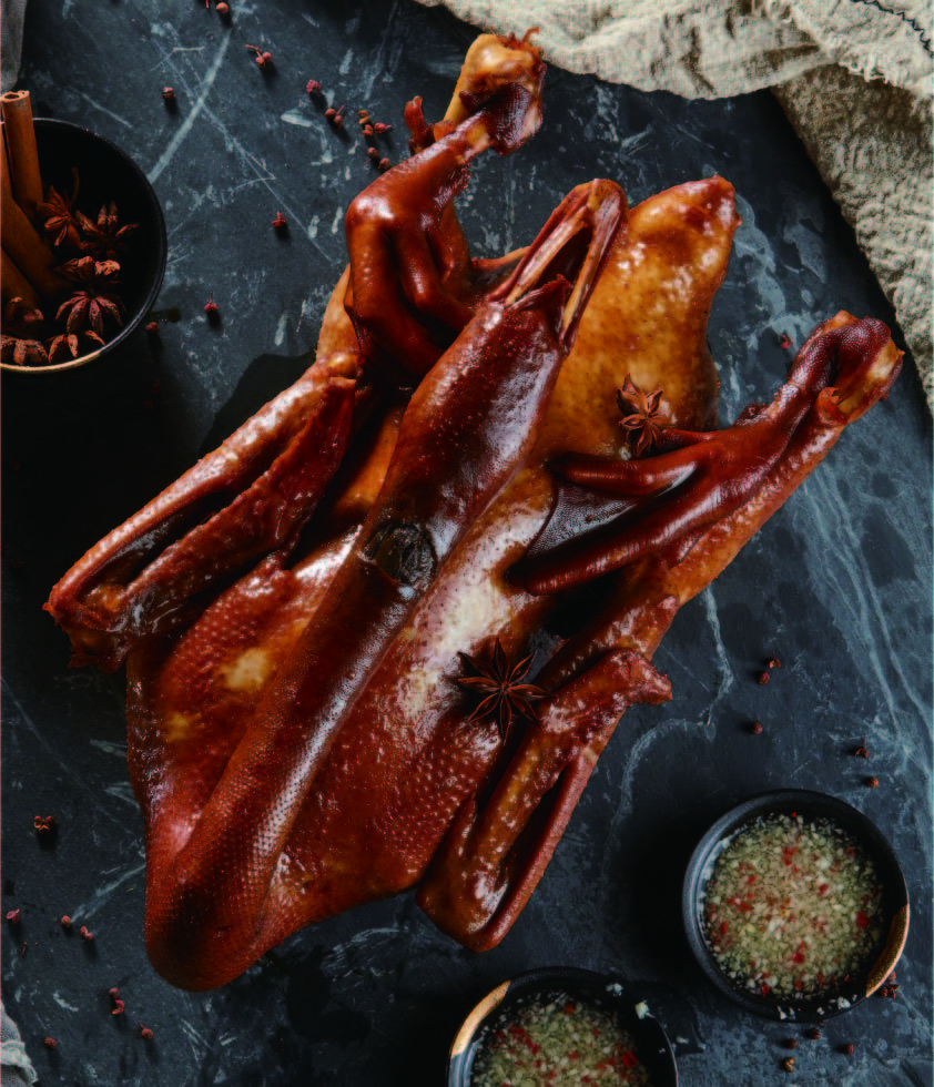 產(chǎn)品介紹:澄海獅頭鵝——眾多的鹵水食物里,地位最高的非鹵水鵝莫屬,俗語(yǔ)有講,「無(wú)鵝肉勿滂沛」,意思就是,沒(méi)有鵝肉的宴席又怎能算得上豐盛? 這就是潮州鹵水鵝的魅力,從肉到骨頭到鹵水,每一部分都充滿著溫潤(rùn)而細(xì)膩的清香。